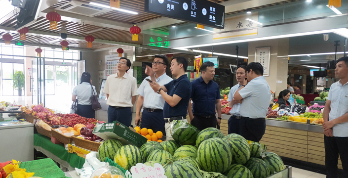 6月12日,中国电科集团产业部副主任裴二章同志、重大办处长刘家荣同志、博微子集团产业部主任黄钊同志等领导一行莅临海恒智慧菜市场,电科十六所、峰泰技术公司领导陪同参观。