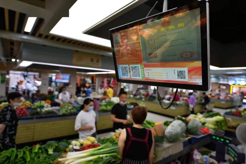 市场摊位统一配备商户信用公示屏和智能溯源电子秤,消费者通过商户信用公示屏上展示的付款二维码扫码支付,支付完成后可以扫描商户评价码点评商家服务。而智能电子溯源秤可以记录每笔交易数据。凭借购物小票,消费者可扫码追溯菜品信息,通过“智能电子秤+食品安全检测室+食品安全追溯平台”的联合机制,建立有效的食品安全溯源系统。新型智慧农贸系统的引进使农贸市场在管理、服务和监管方面,真正做到了信息网络化、工作规范化以及管理现代化。