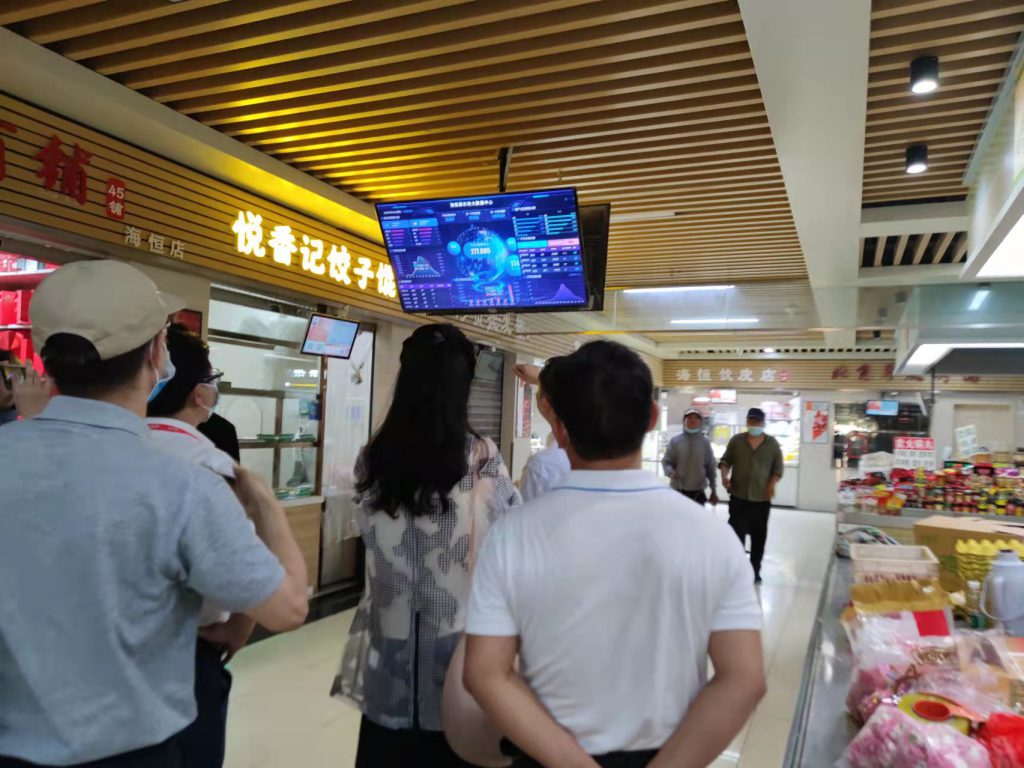 9月6日,中国电子科技集团战略中心副主任张洪天、产业部信息产业处副处长李凌宇等领导一行莅临实地考察了电科峰泰的智慧农贸项目-经开区海恒菜市场,并详细了解了该农贸市场大数据显示屏、信息查询屏、商户显示屏等智慧化设备情况。