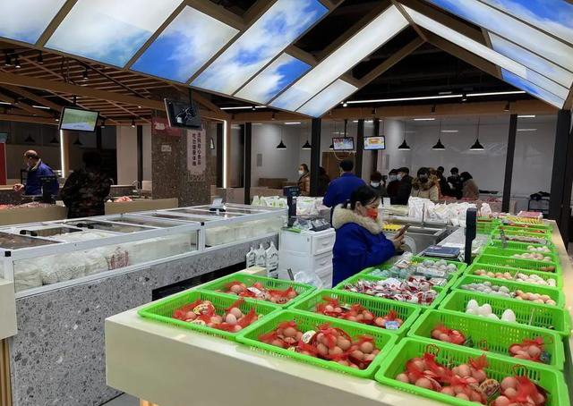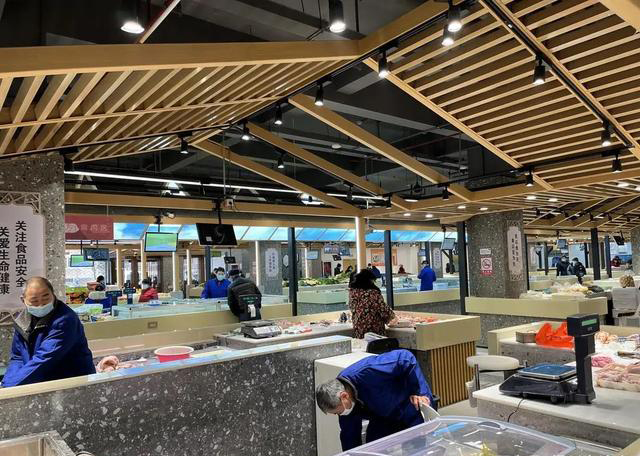 这座以小桥流水为主题建造的智慧农贸市场无论是从内外颜值、功能定位还是管理服务等方面都实现了提档升级。合理的分区布局、宽敞的通道、明亮的灯光、干净的走道、标准化的摊位,整齐有序的铺面柜台、门头,让人眼前一亮,食品安全检测、中央空调、通风系统、智能消防、排水排污五大配套功能一应俱全?;霰渖淼奈髀砬排┟呈谐?,给周边居民带来了更多便捷和舒适。