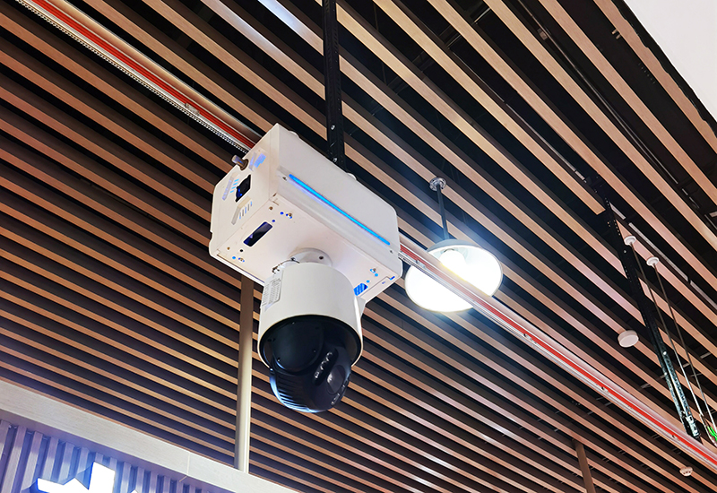 其中,AOE消杀机可主动、快速杀灭环境中的病毒、细菌和真菌,可为疫情期间市场内的疫情防护工作提供有效助力;智能轨道巡检机器人可以自动规划路径,对违规行为自动判别和自动报警,实现市场全方位监测,可以大大提高工作效率。