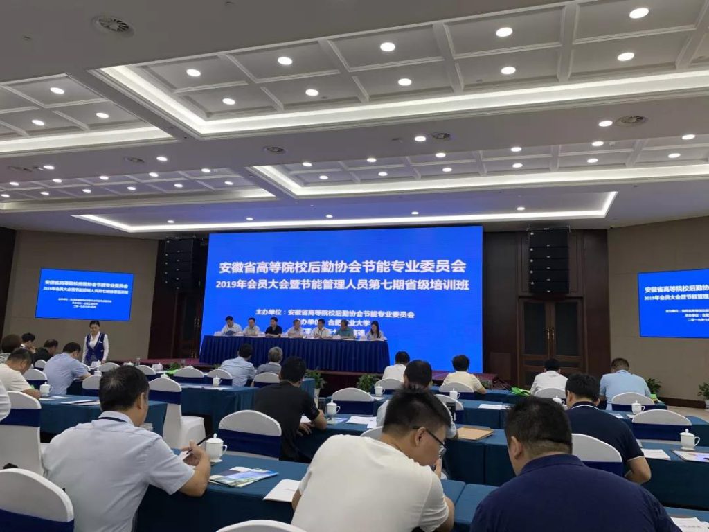 2019年7月19日,中国电科?峰泰技术开发有限公司受邀参加由安徽省高等院校后勤协会节能专业委员会举办的2019年会员大会暨节能管理人员第七期省级培训班。