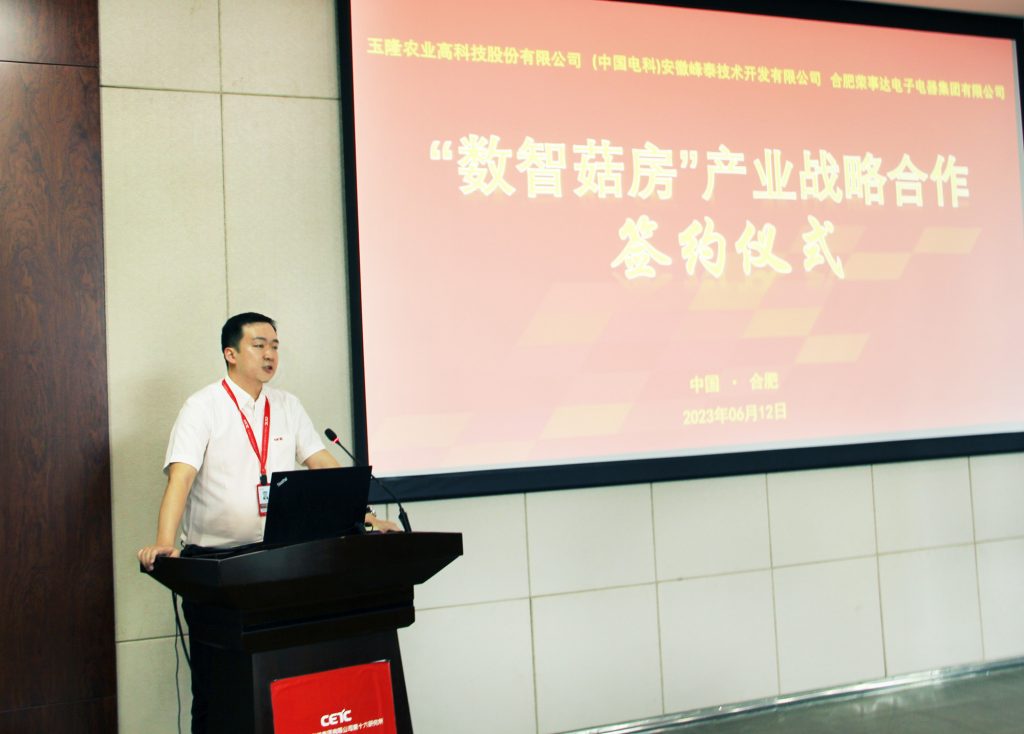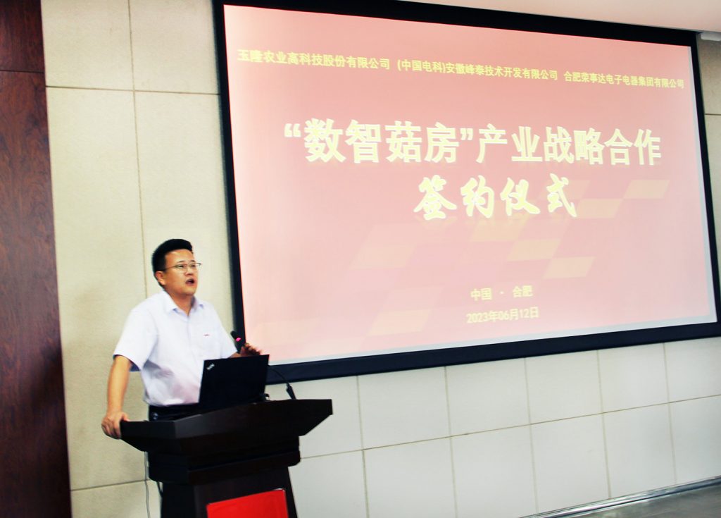 ? ? ? ?此次签约标志着电科峰泰、玉隆高科、荣事达集团在“数智菇房”产业战略合作的开始。三方将在未来的合作中,促进资源互补,积极探索更多商务合作新模式,互惠共赢、创新发展,为食用菌产业装上“数智”大脑。
