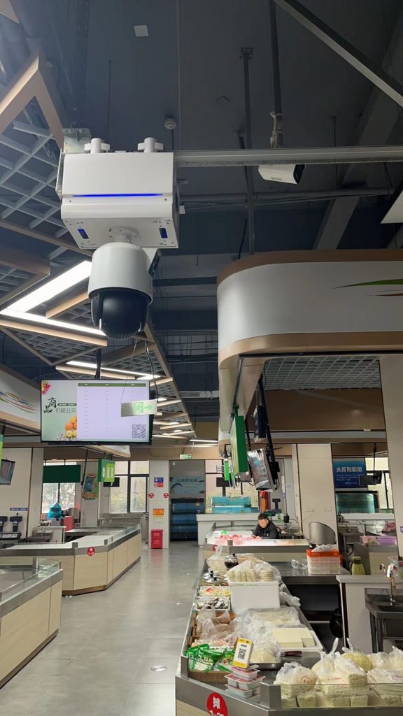 轨道巡检机器人实时监测和记录菜市场内的各种情况,对市场内的情况进行全面检测、准确识别、智能分析,对违规行为自动判别和自动报警,缓解农贸市场的治理压力。