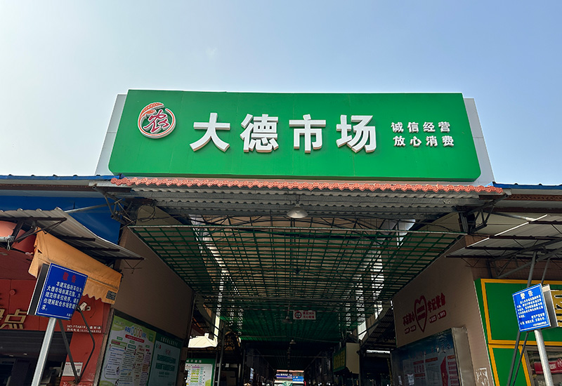 叠南市场2021年完成全场升级改造,经营面积5000多平方米,市场内不同种类食物分区域摆放。市场内智能溯源电子秤具备扫码支付、打印交易凭证(含溯源二维码)、实时上传交易数据等功能。商户信用公示屏可用于展示商户证照信息、票据信息、价格信息、评级信息、付款二维码。